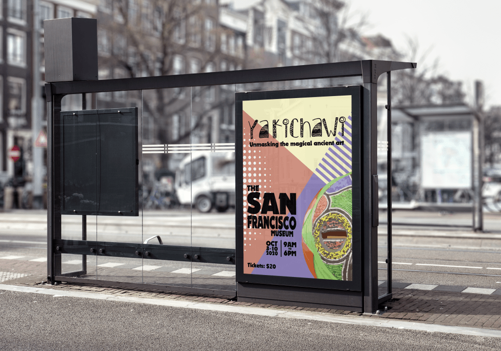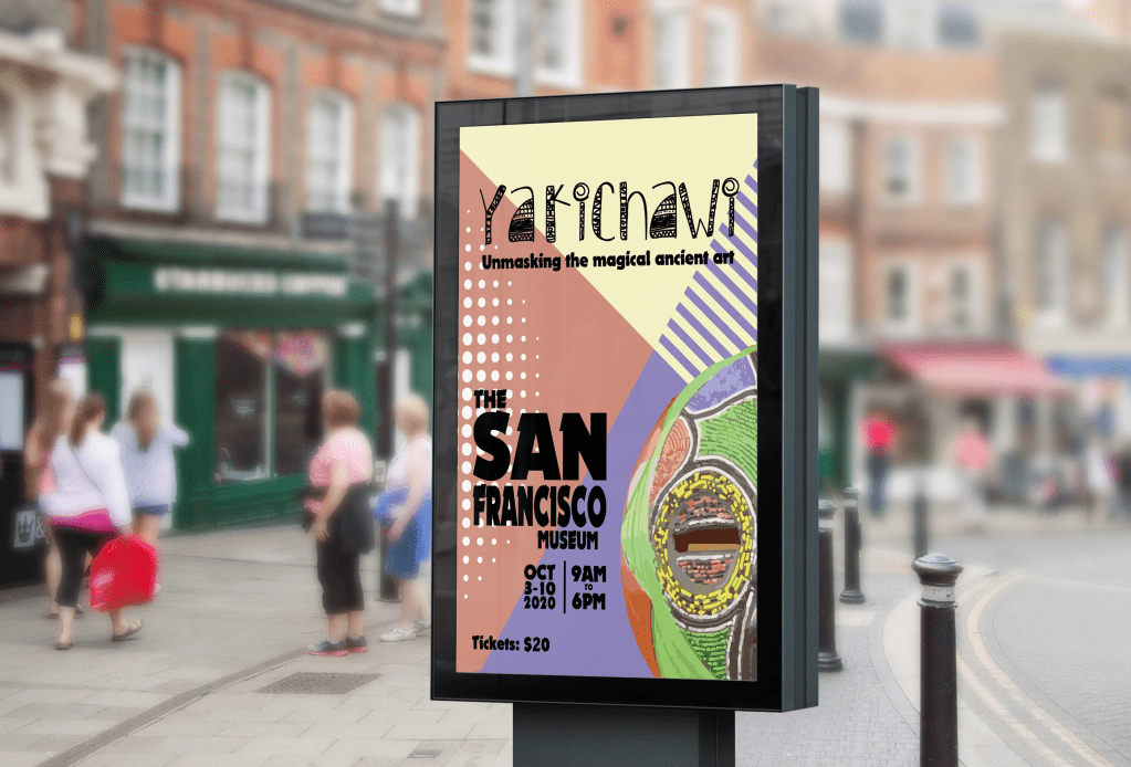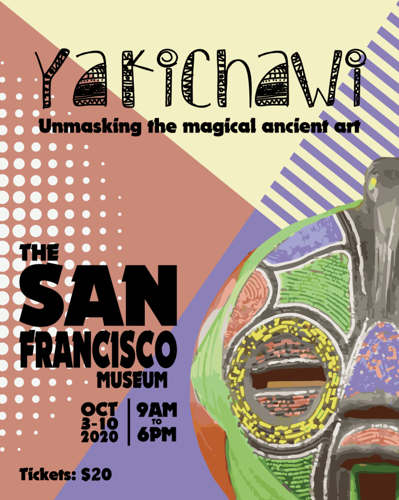 Designing a poster for this event was challenging. The show was about the African ancient culture, and all the mystical things attached, while keeping a pop vibe to the poster. I chose the name “Yakichawi” for the event because it means magical in Swahili language, which reflects what this show really feels like. The background colors were taken from the mask colors, and the font was chosen to match the culture.
